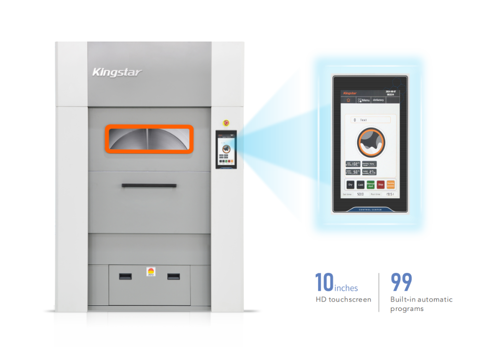 ❑ Mga programa sa pagpapatuyo: Sa mga tuntunin ng mga programa, ang Kingstar 100 kg dryer gumagamit ng 10-pulgadang full-color na touch screen, na maaaring mag-imbak ng 99 na mga programa sa pagpapatuyo. Ang mga parameter sa bawat programa ay maaari ding ayusin. Kapag nagpapatuyo, ang dryer ay gumagamit ng tatlong-mode na kontrol: oras, temperatura at halumigmig.
