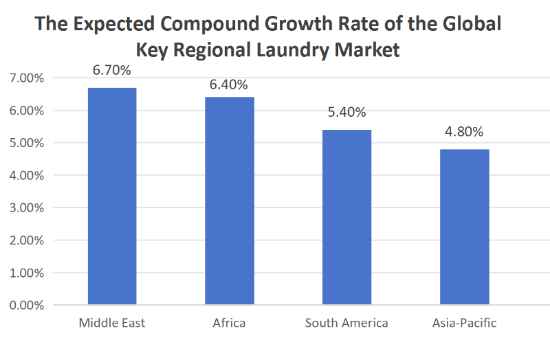Sa mga tuntunin ng geographic na pamamahagi, ang Hilagang Amerika ay naging tuktok ng pandaigdigang merkado ng mga serbisyo sa paglalaba, na nagkakahalaga ng 33.6%. Ang Asia-Pacific, Kanlurang Europa, at iba pang mga rehiyon ay sumusunod.