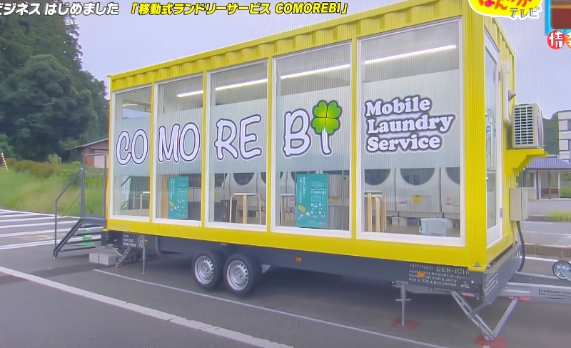 Ang mobile self-service laundromat na ito ay sinaliksik at binuo ng isang sikat na Japanese freight company “Yamamoto Transport” .