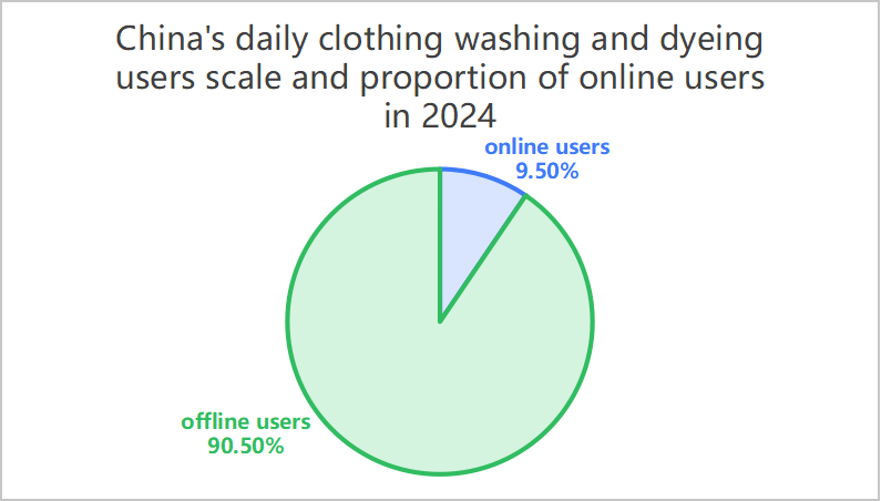 Tinatayang ang kabuuang sukat ng araw-araw clothing washing at ang industriya ng pagtitina ay magiging humigit-kumulang 292 milyong tao sa 2024. Ang laki ng mga online na gumagamit ng paghuhugas at pagtitina ay humigit-kumulang 2700 milyon, na nagkakahalaga ng 9.5%. Mayroon pa ring 90% ng mga user na hindi pa nakakasubok ng online laundry. Kung mula sa pananaw ng mga mamimili o kita ng industriya, ang online na paglalaba at pagtitina ng mga damit na pang-buhay ay nagsimulang magkaroon ng hugis, at mayroon pa ring napakalaking silid para sa paglago.