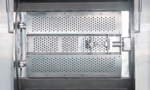 Ang pinto ay gawa sa 304 stainless steel at nilagyan ng safety lock at interlock control system. Nagbibigay ang system na ito ng maaasahang proteksyon sa kaligtasan: hindi mabubuksan ang pinto habang tumatakbo ang makina, at hindi makakapagsimula ang makina kung hindi nakasara nang maayos ang pinto. Bukod pa rito, kapag nakabukas ang isang pinto sa gilid, nananatiling naka-lock ang kabilang panig upang matiyak ang paghihiwalay.